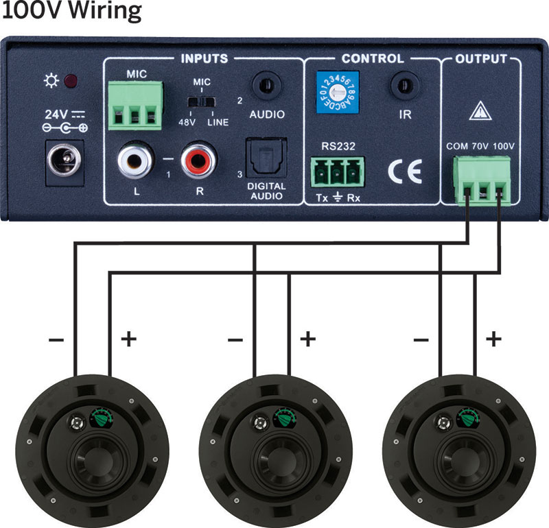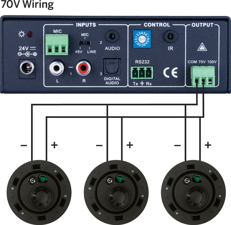 Compatible with 70V/100V speakers and systems